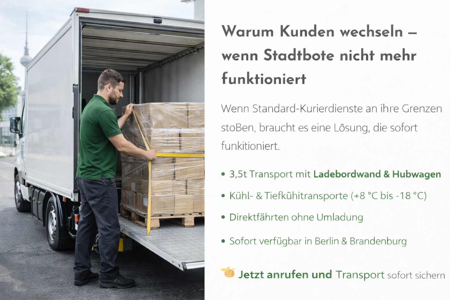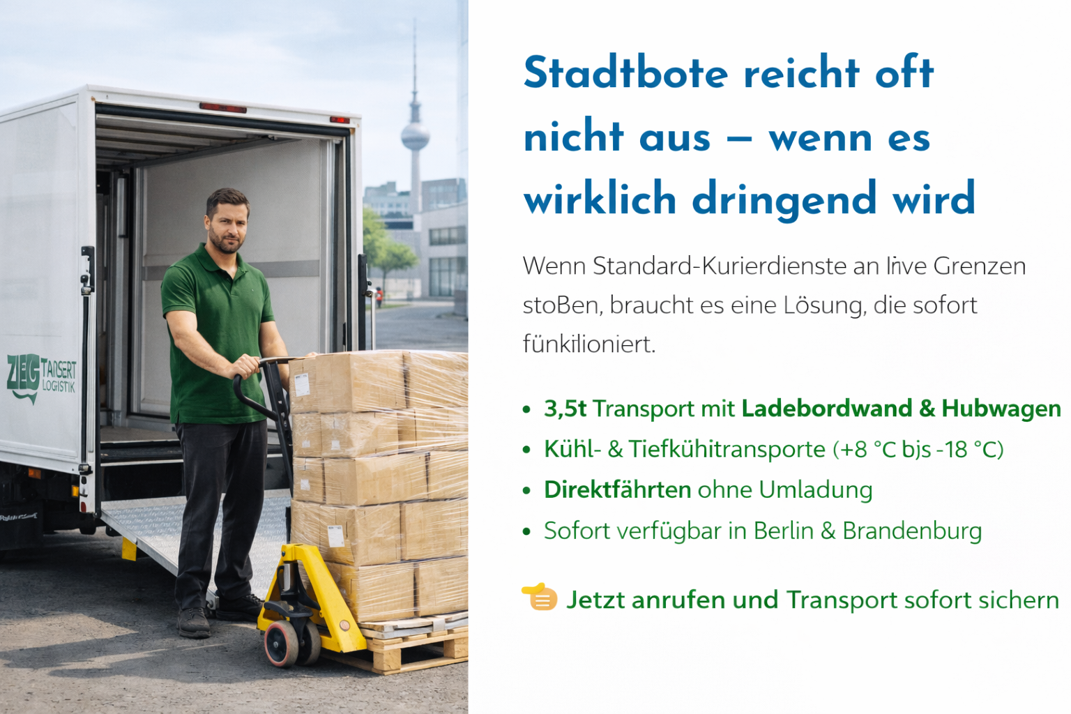 Stadtbote Berlin reicht nicht? – Transport mit Ladebordwand, 3,5t & Kühlung sofort verfügbar